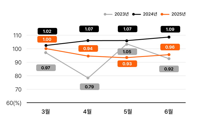 6월의 반등은 계절 수요가 본격화된 결과로 보이지만, 이 회복 흐름이 지속될지는 좀 더 지켜봐야 합니다.
