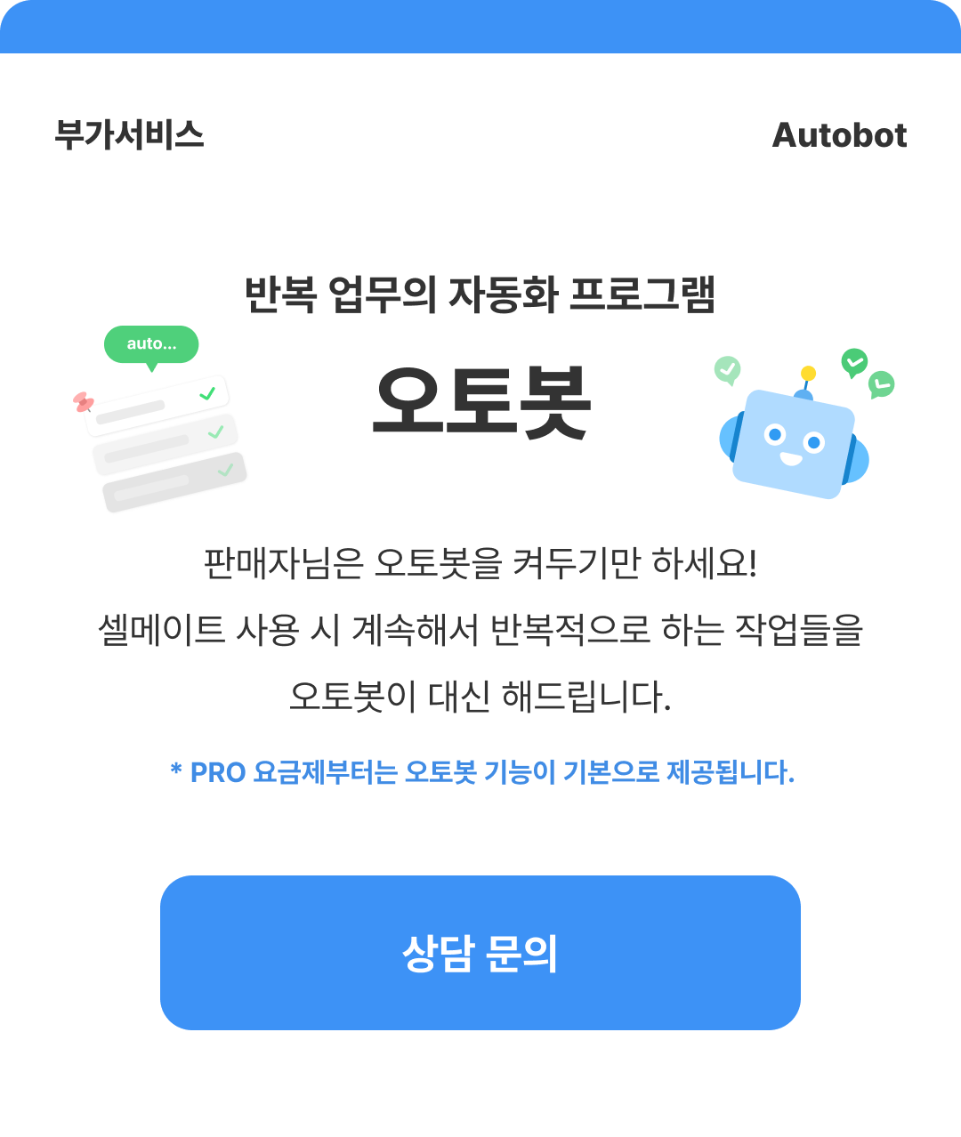 모든 판매처를 오토봇으로 일괄 작업하는 게 아니라 판매처별로 간단하게 설정할 수 있어요.