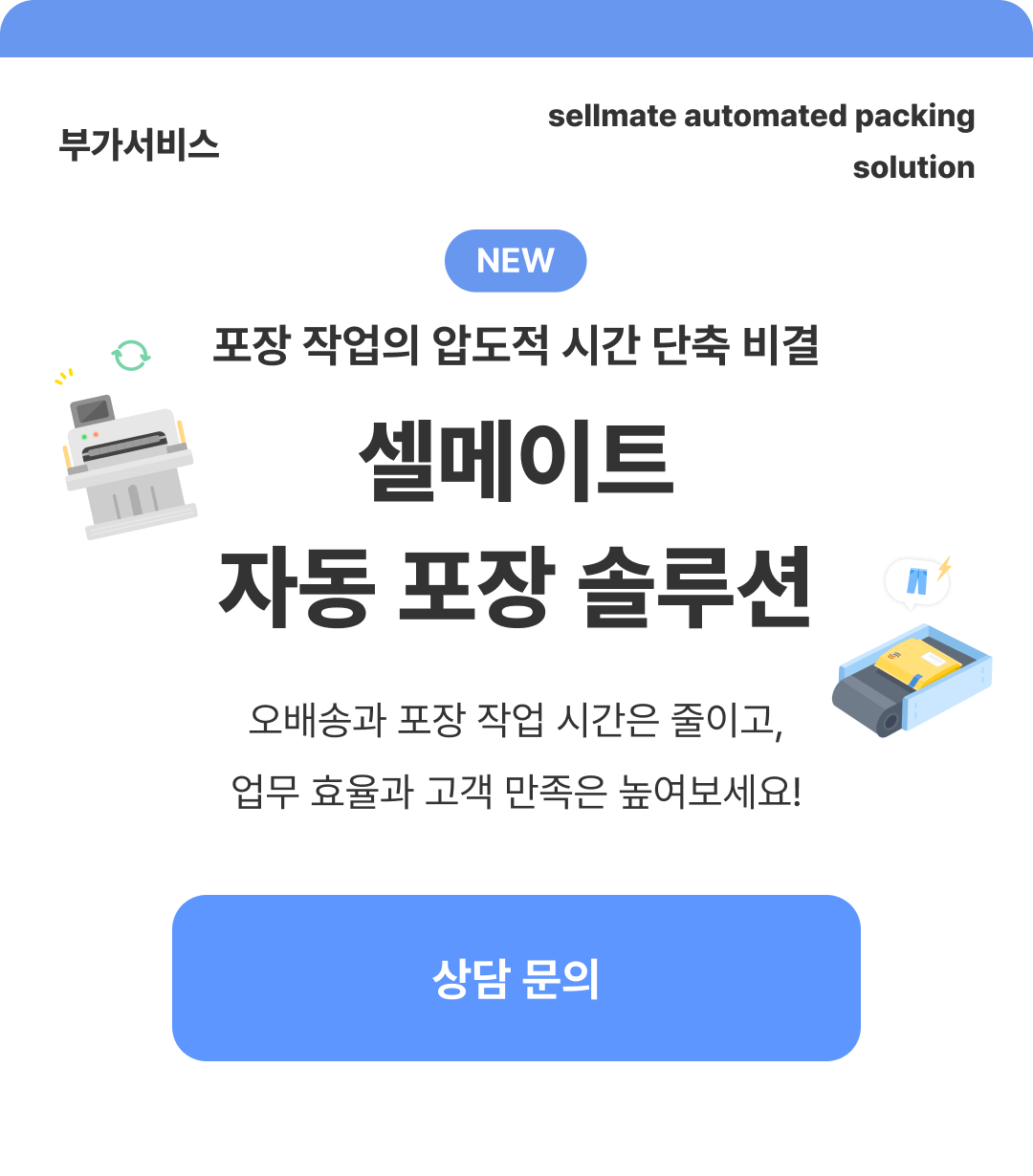 셀메이트 자동 포장 솔루션이 정답입니다.
